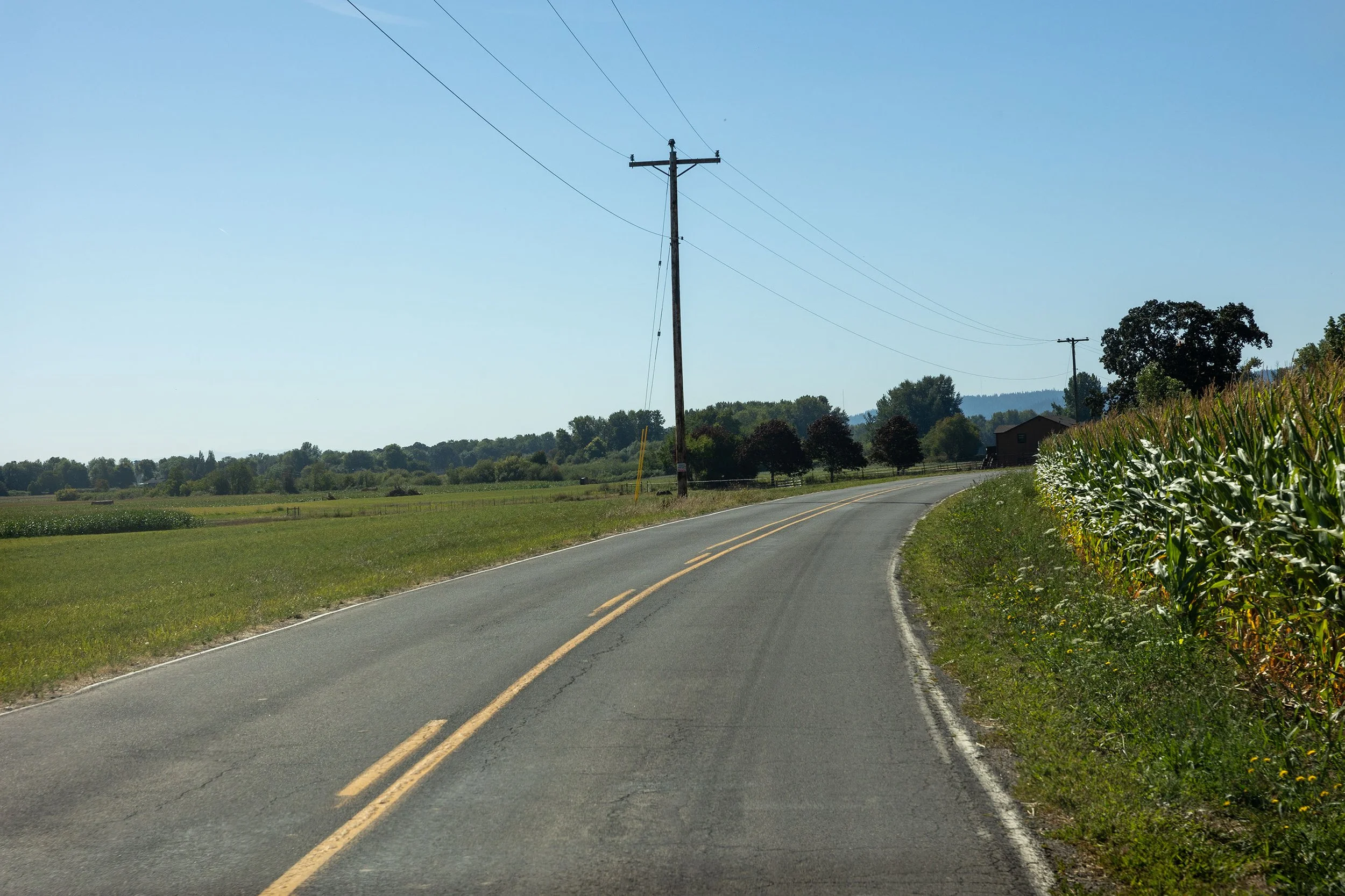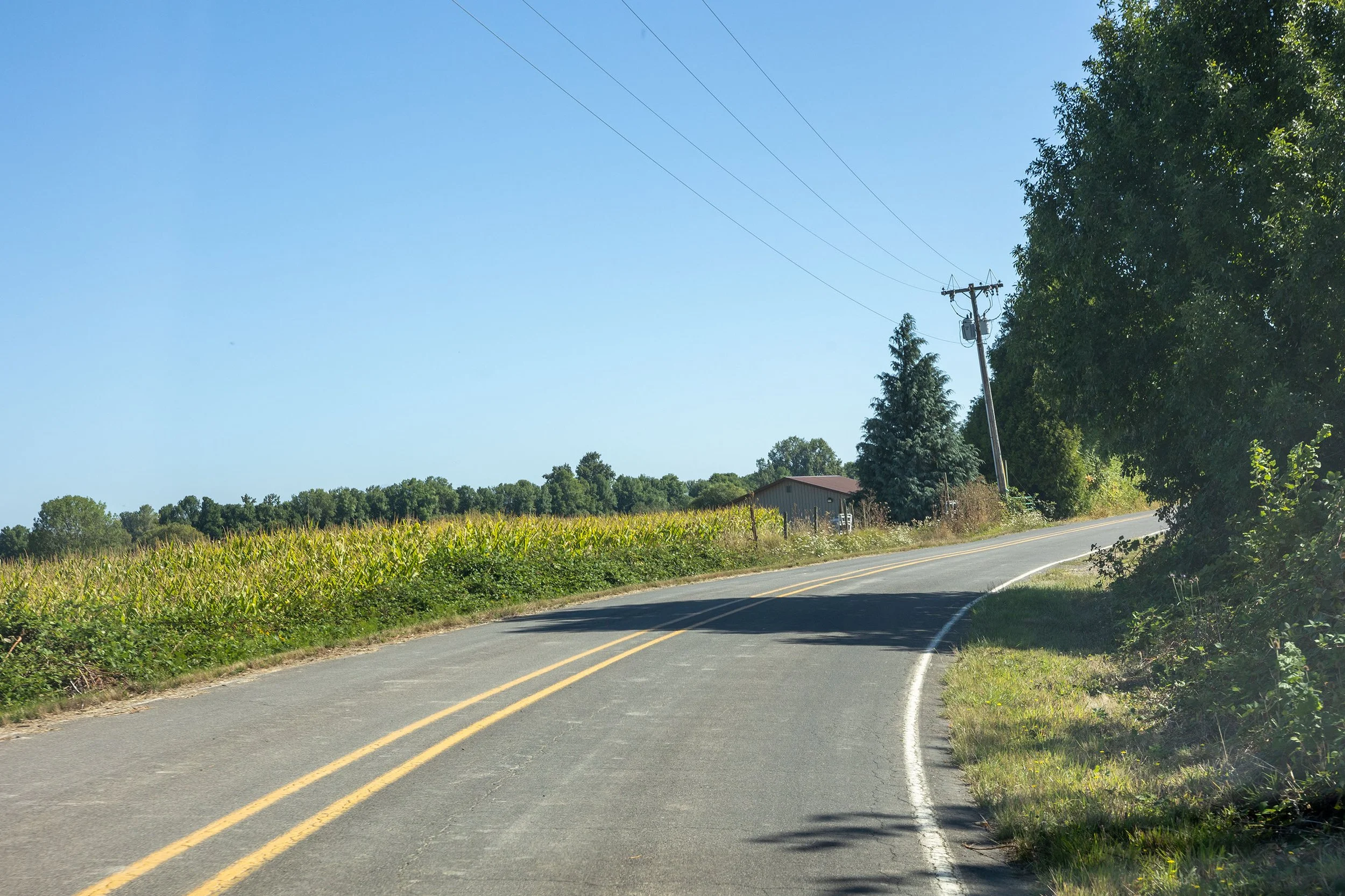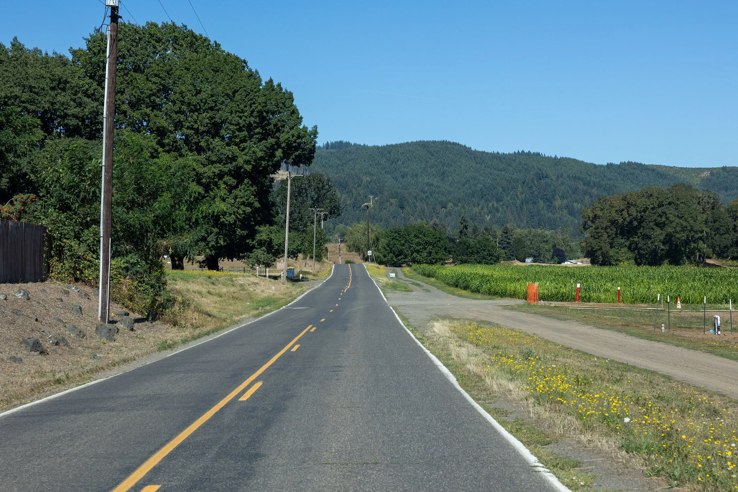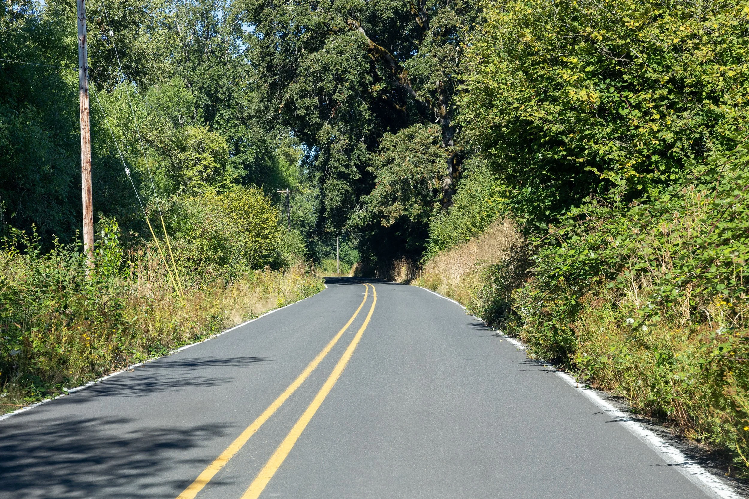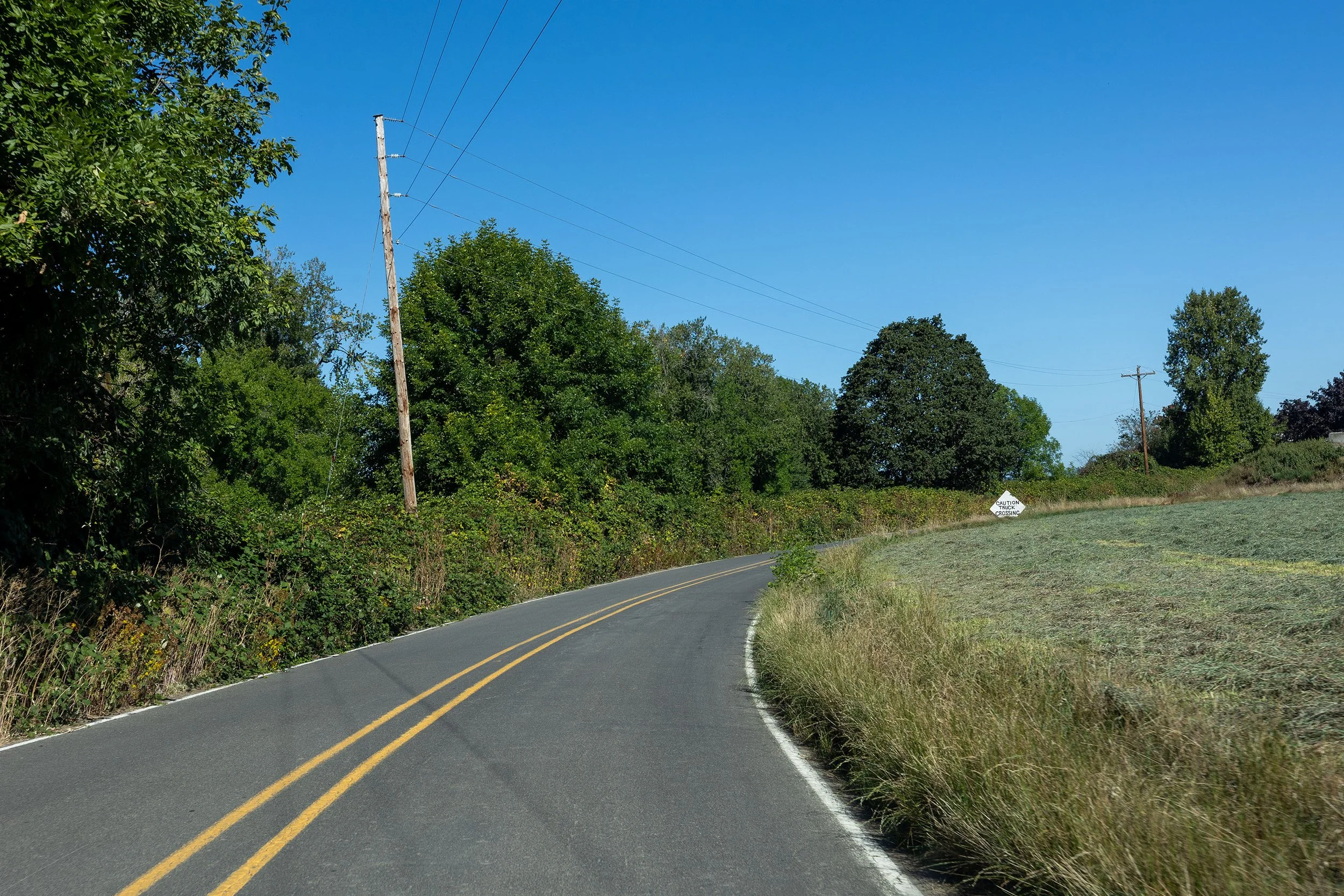 A majority of the roads do not have much of a shoulder for crew to stand on. A lot of black berry bushed on the sides of the roads. some sections of farm land on the heavier traveled roads, I would recommend Traffic control if selected.