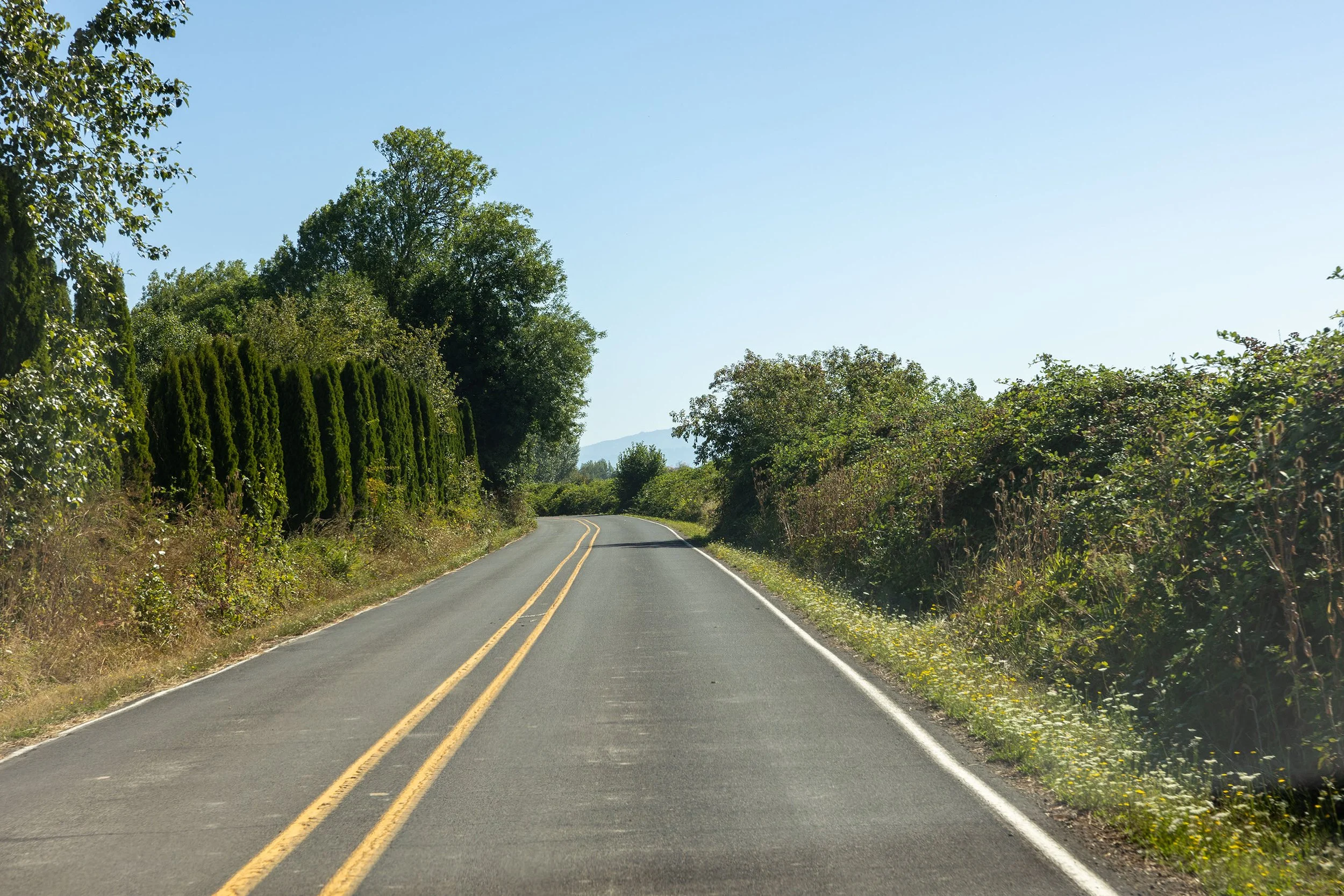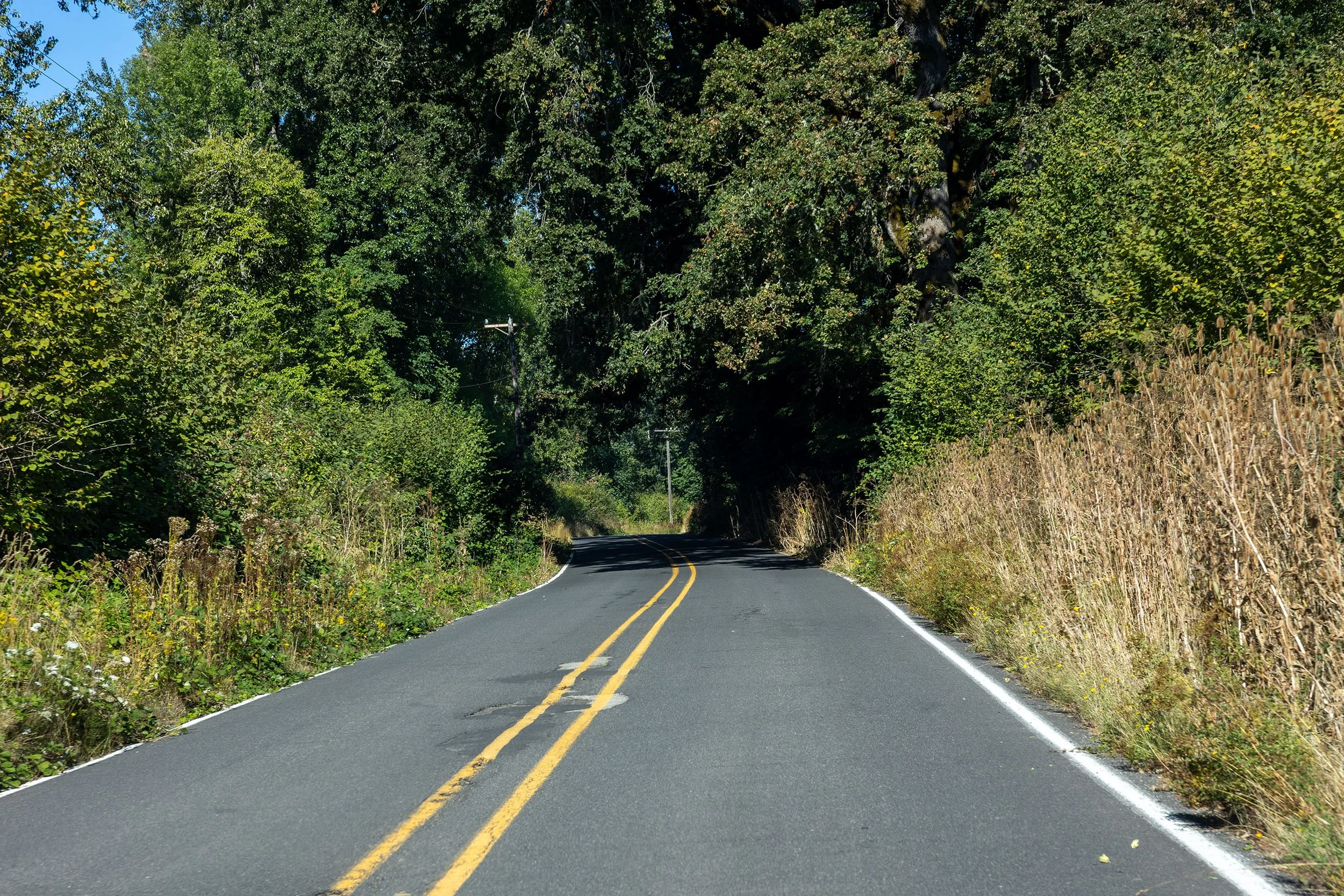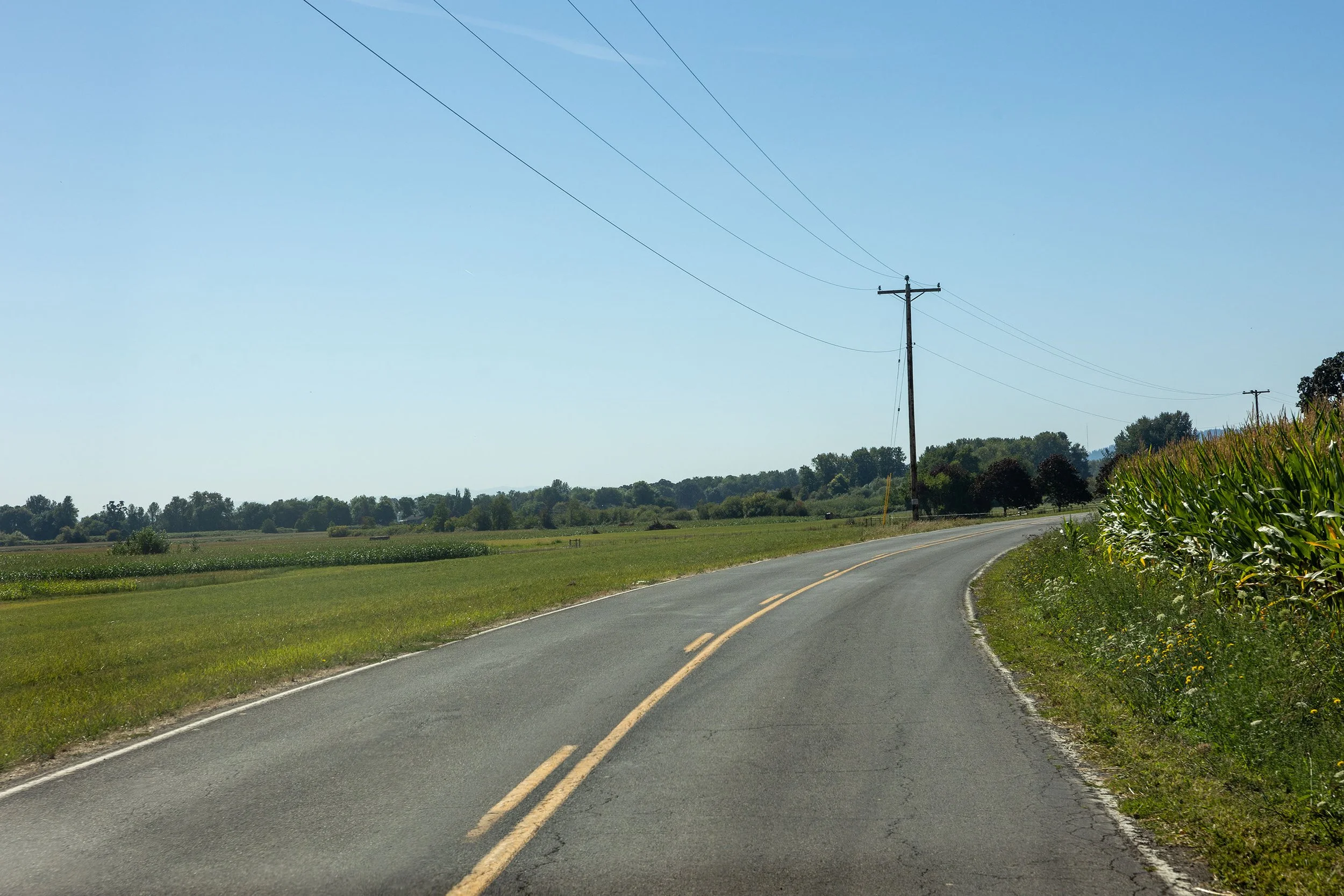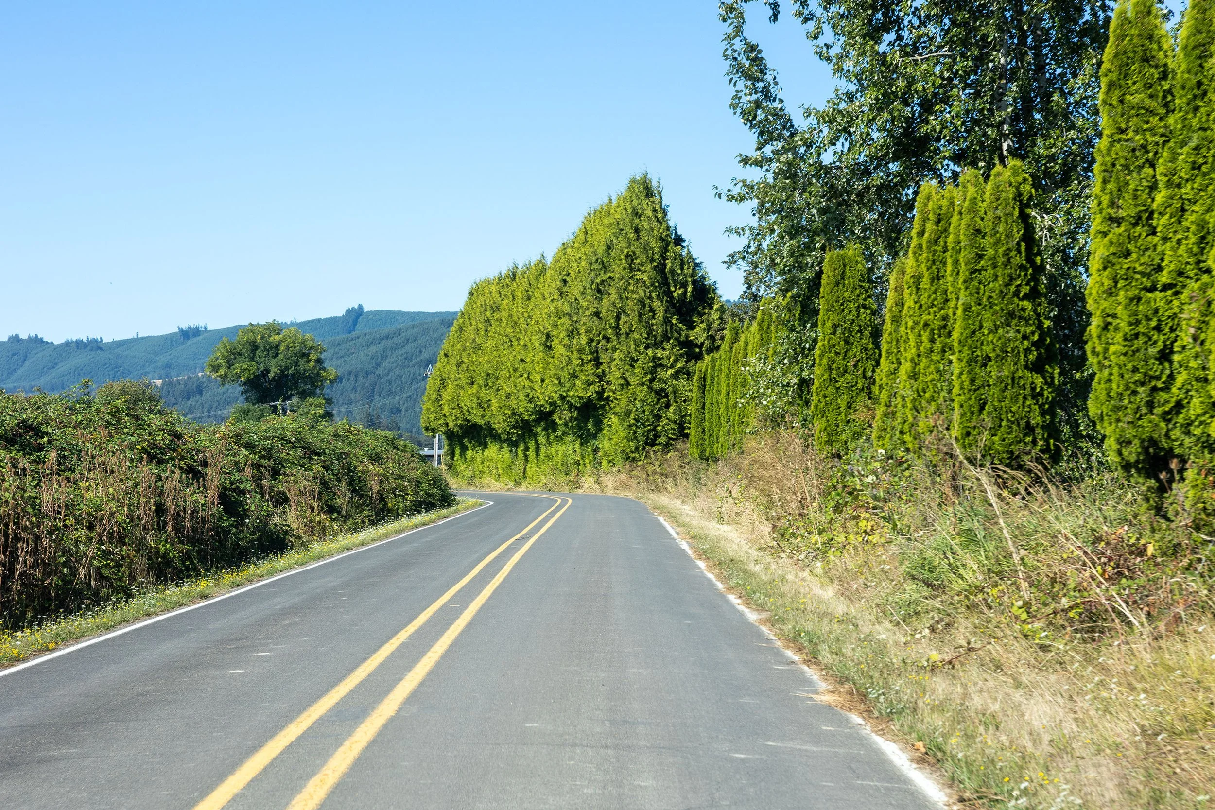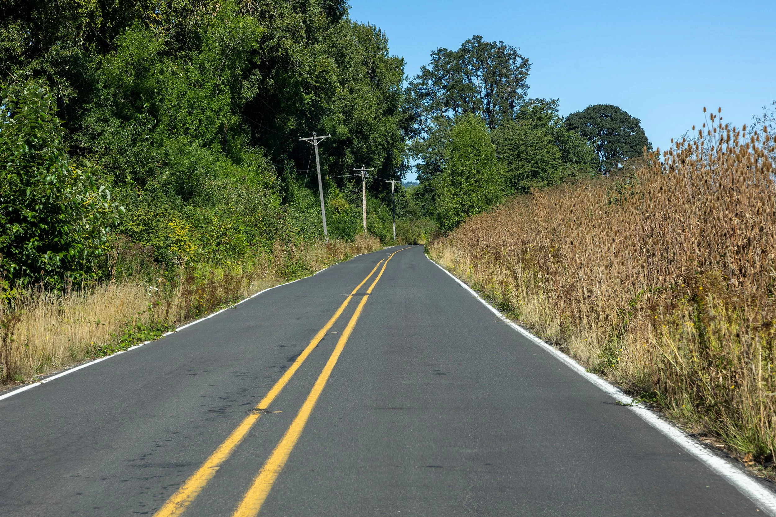 A majority of the roads do not have much of a shoulder for crew to stand on. A lot of black berry bushed on the sides of the roads. some sections of farm land on the heavier traveled roads, I would recommend Traffic control if selected.